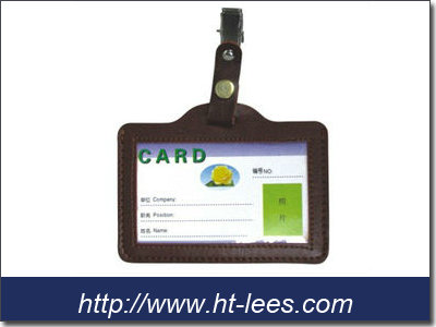 Materials: leather, with a metal swivel clip, and a paper card inside
